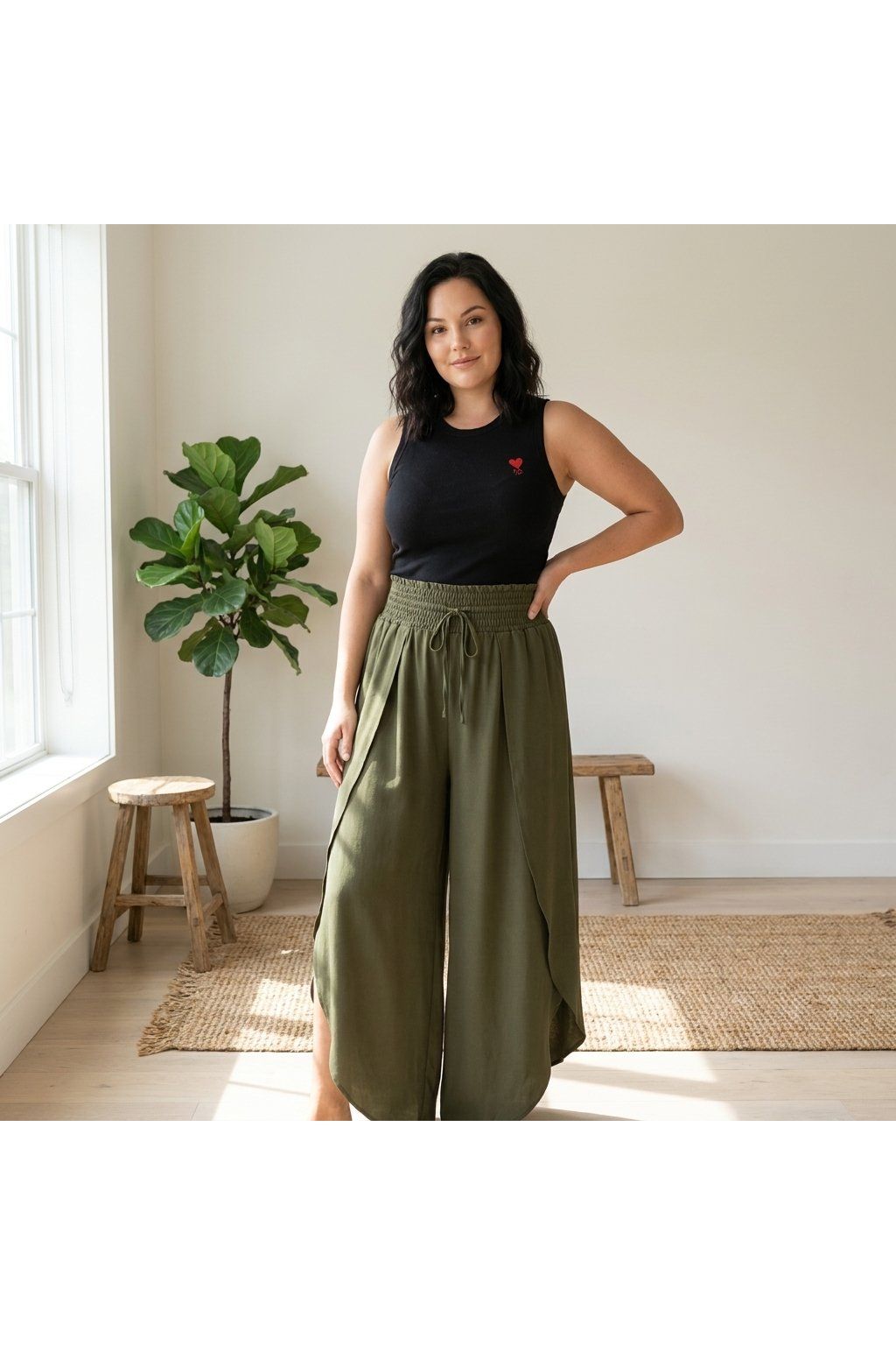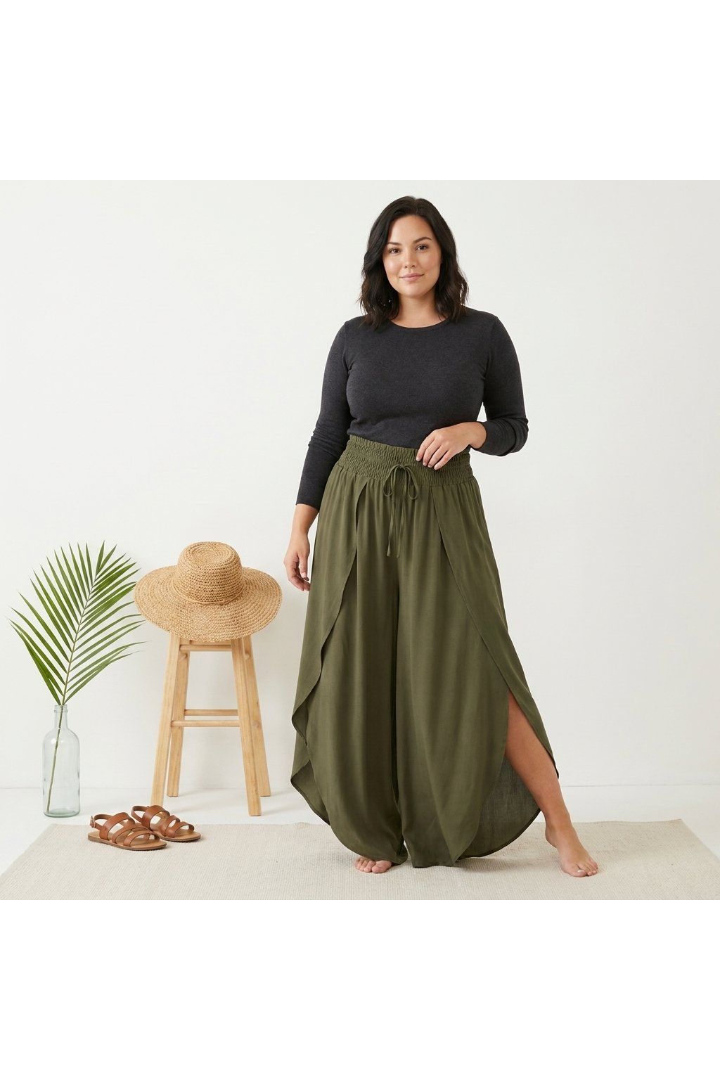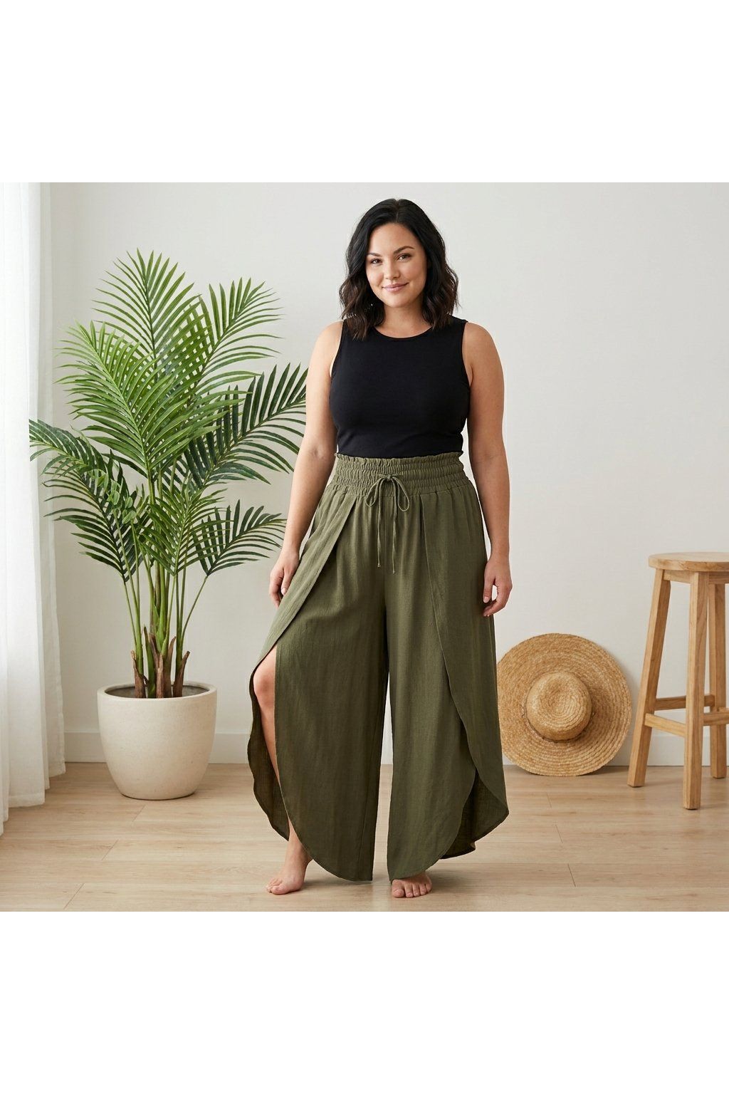Kalhoty jsou ideální volbou na každodenní nošení – do práce, na procházku i na dovolenou. Lehký materiál je příjemný na těle a zajišťuje komfort i v teplejších dnech. Stylový detail v podobě efektního překrytí/rozparku dodává outfitu šmrnc a originalitu.