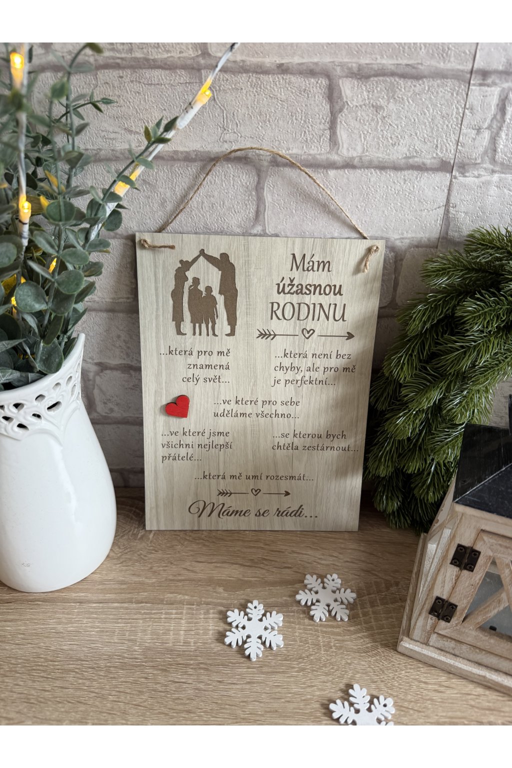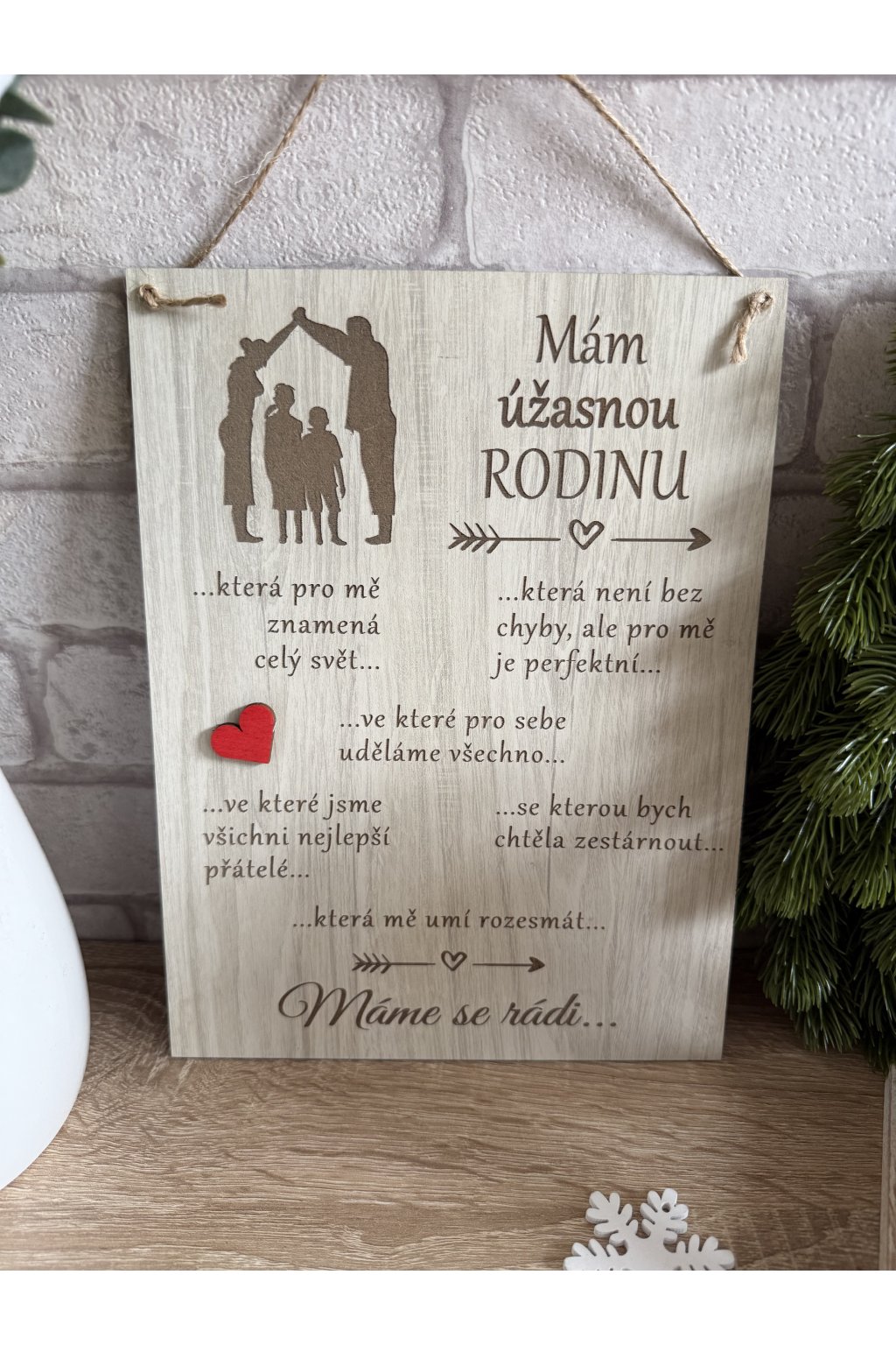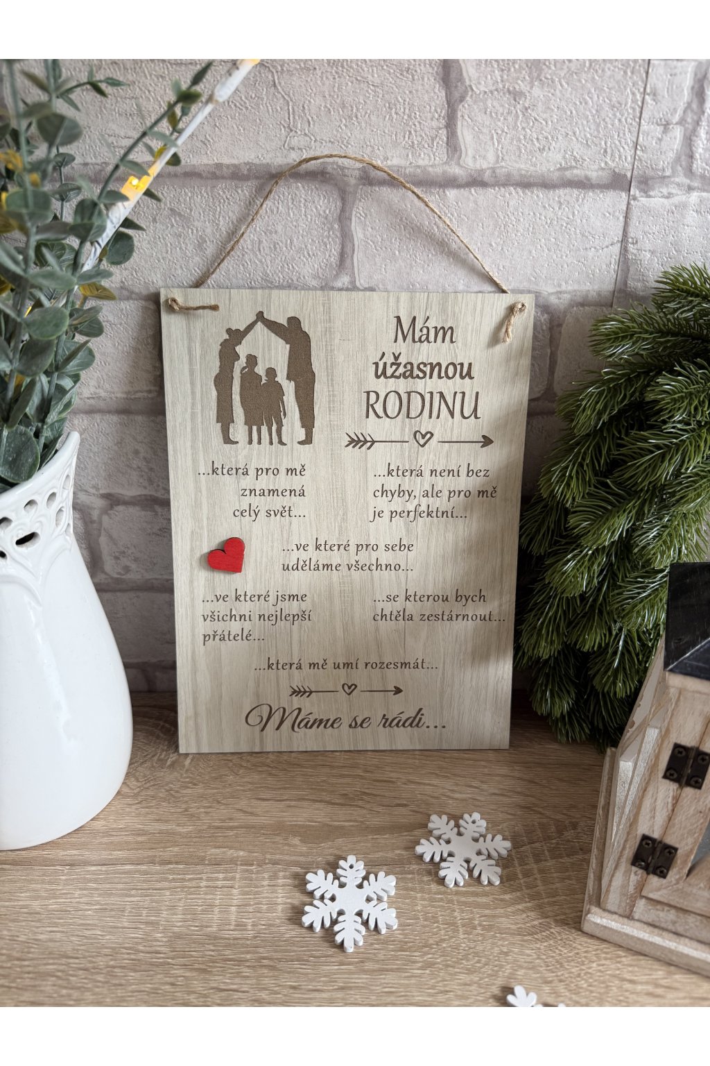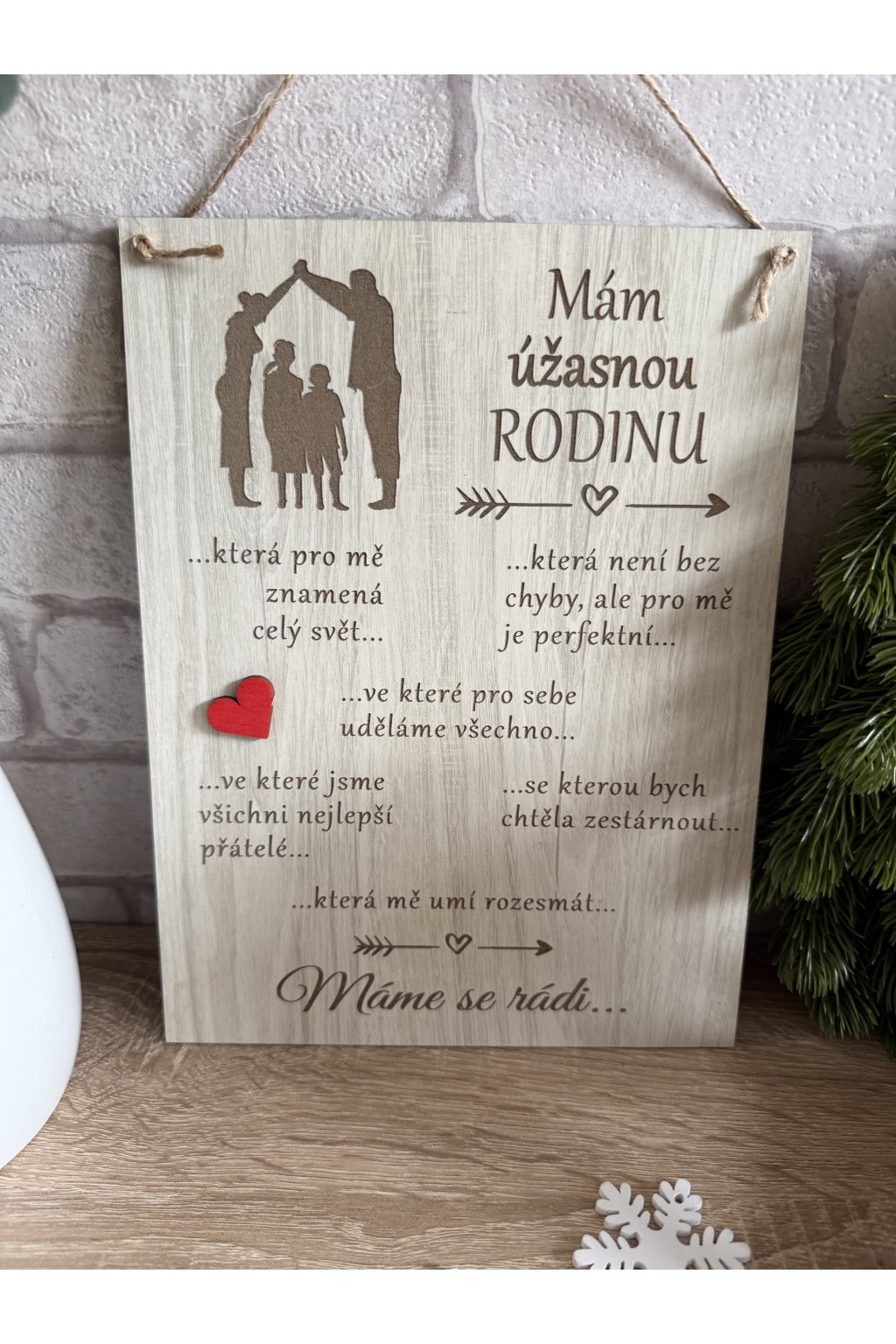 Dřevěná cedule 26x20cm - Mám úžasnou rodinu