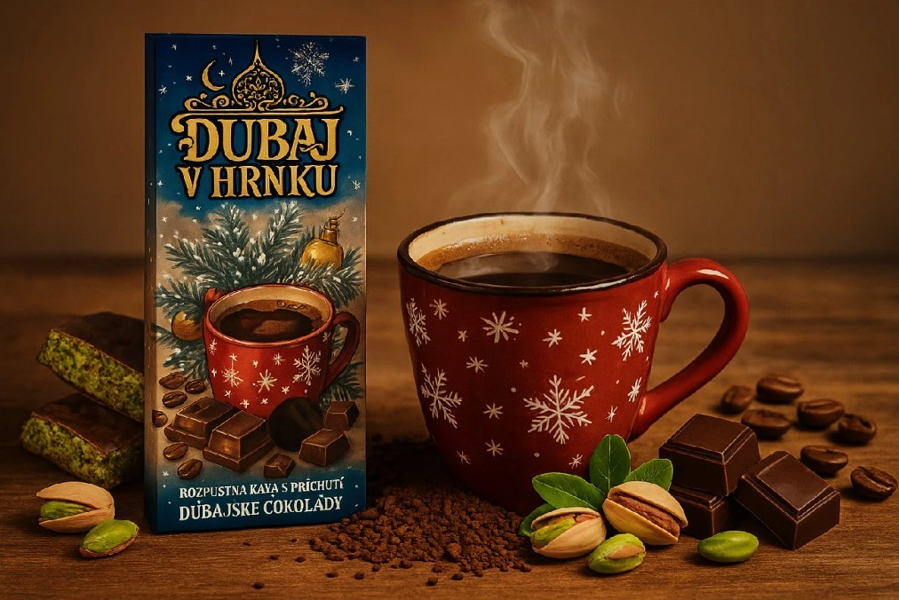 Dubaj v hrnku -rozpustná káva s příchutí dubajské čokolády