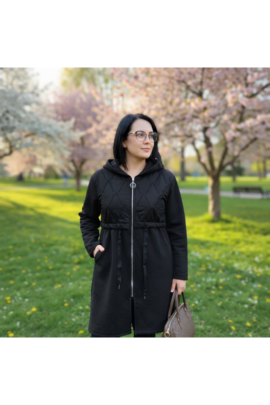 Stylová prodloužená bunda s kapucí v nadčasovém střihu, který lichotí postavě. Příjemný, měkký materiál zaručí pohodlí při nošení, lehce zateplený horní díl zahřeje v chladnějších dnech. Praktické kapsy, zip po celé délce a možnost stažení pod prsy. Skvělá volba na jaro, podzim i chladnější letní večery.