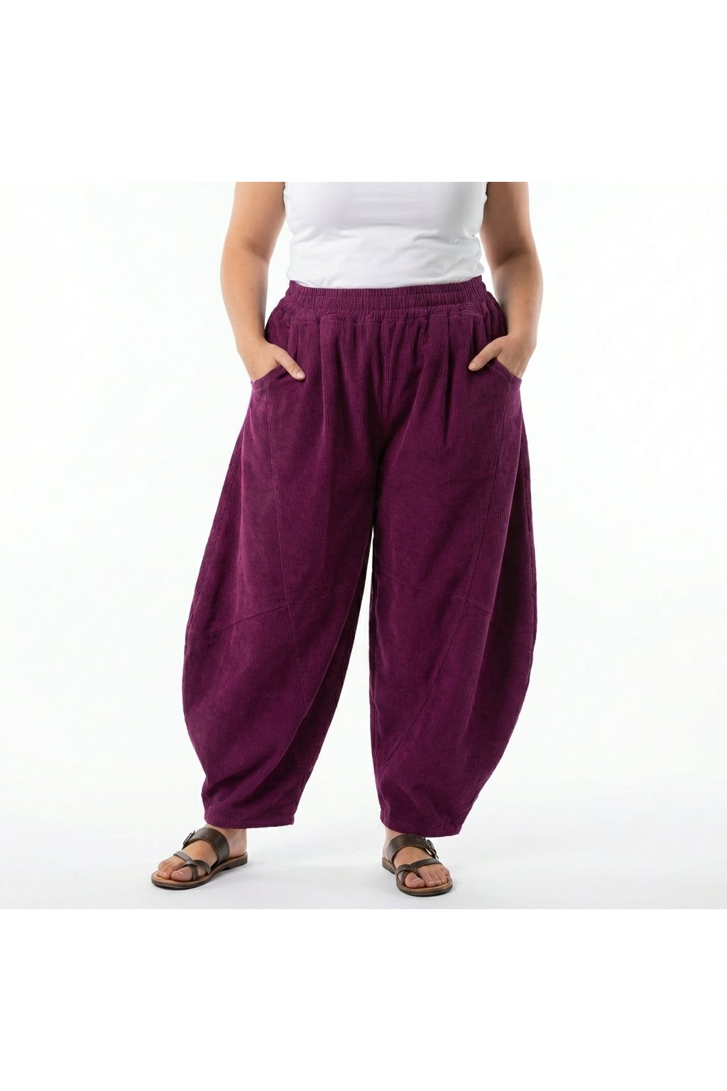 Styl, pohodlí a volnost pohybu v jednom kousku. Tyto volné kalhoty z jemného manšestru mají vysoký pas se širokou gumou, takže krásně sedí a netlačí. Střih je vzdušný, ideální na celodenní nošení – do práce, na procházku i na volný čas.