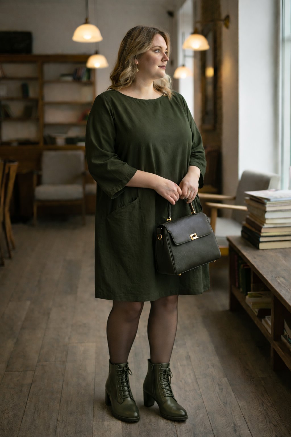 Manšestrové oversize šaty Ella, khaki, UNI vel. 44-52