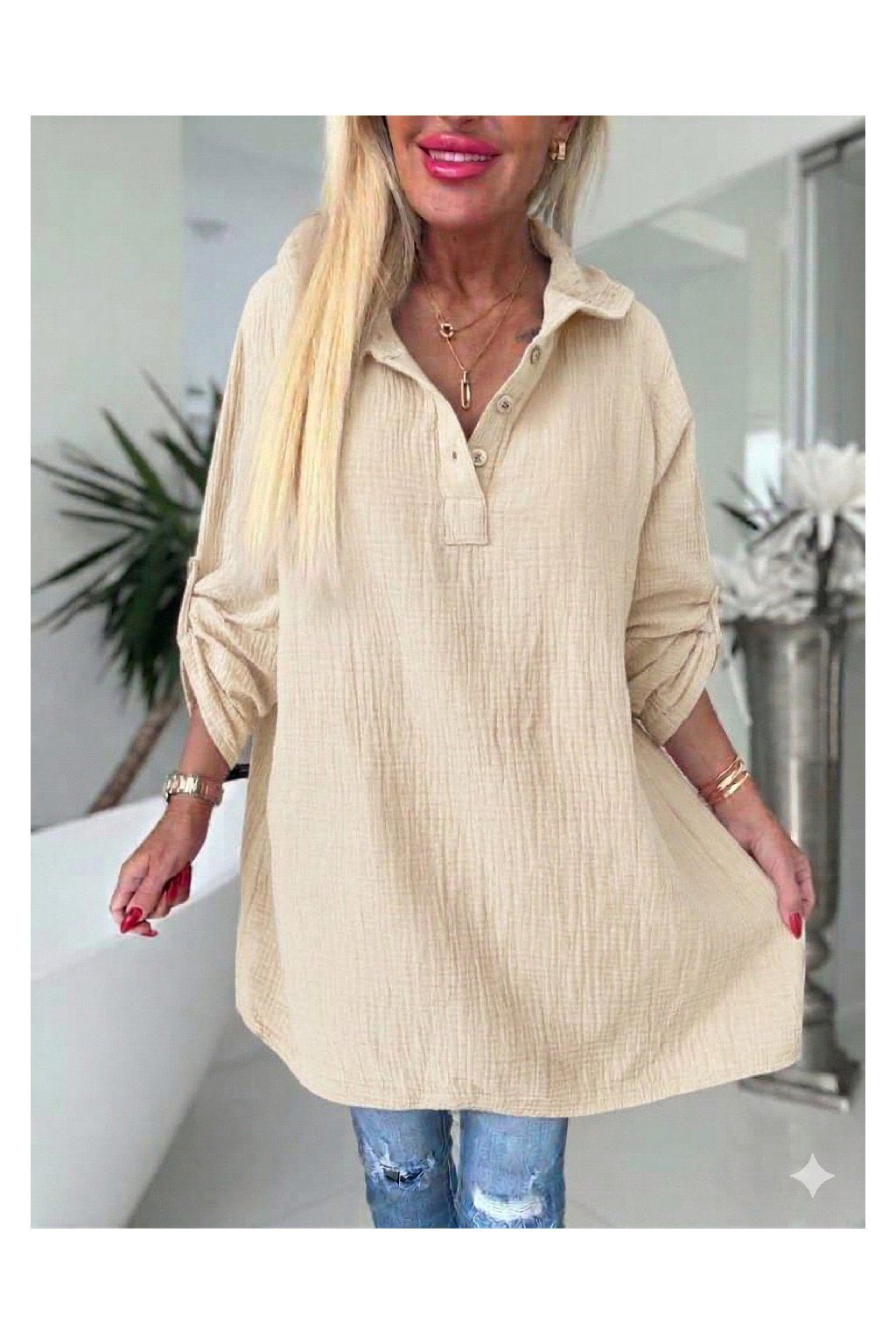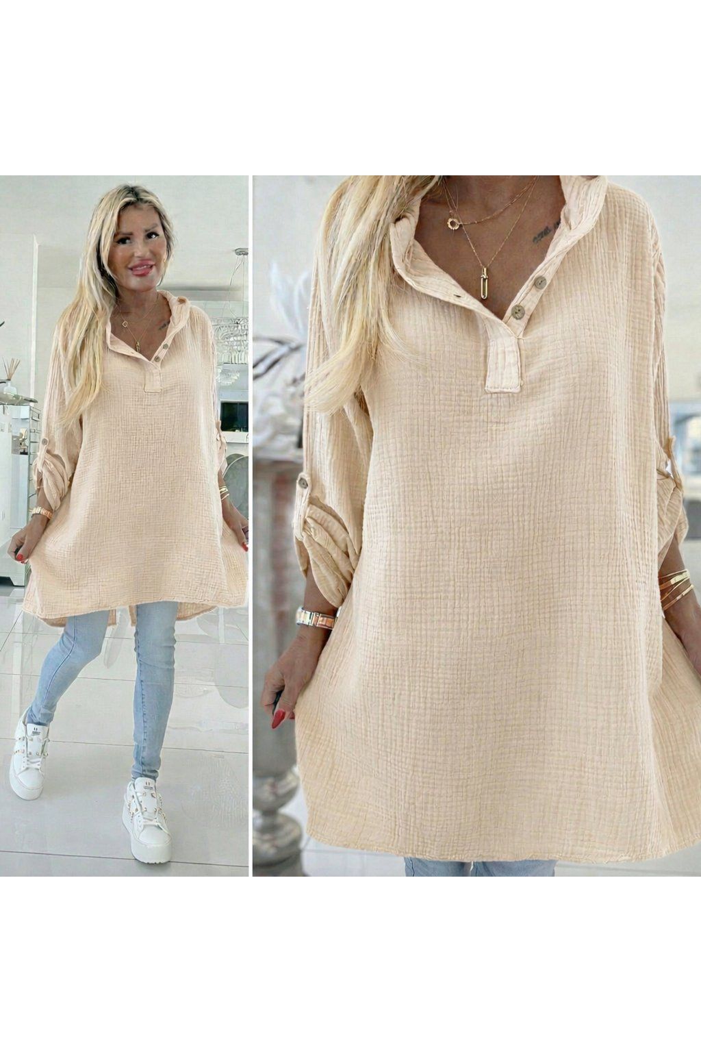 Objevte dokonalé spojení stylu a pohodlí v podobě mušelínové polokošile, která si vás získá na první obléknutí. Díky 100% bavlněnému mušelínu je halenka neuvěřitelně lehká, vzdušná a příjemná na těle – ideální pro teplejší dny i vrstvení.