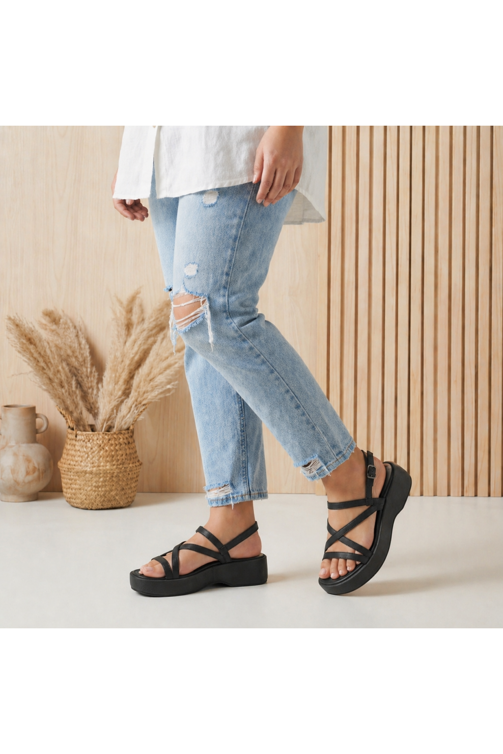 Platforma dodává botám moderní vzhled a zároveň opticky prodlužuje postavu. Sandály snadno zkombinujete s šaty, sukní i kalhotami, ať už vyrážíte do města, na dovolenou nebo jen na běžné pochůzky.