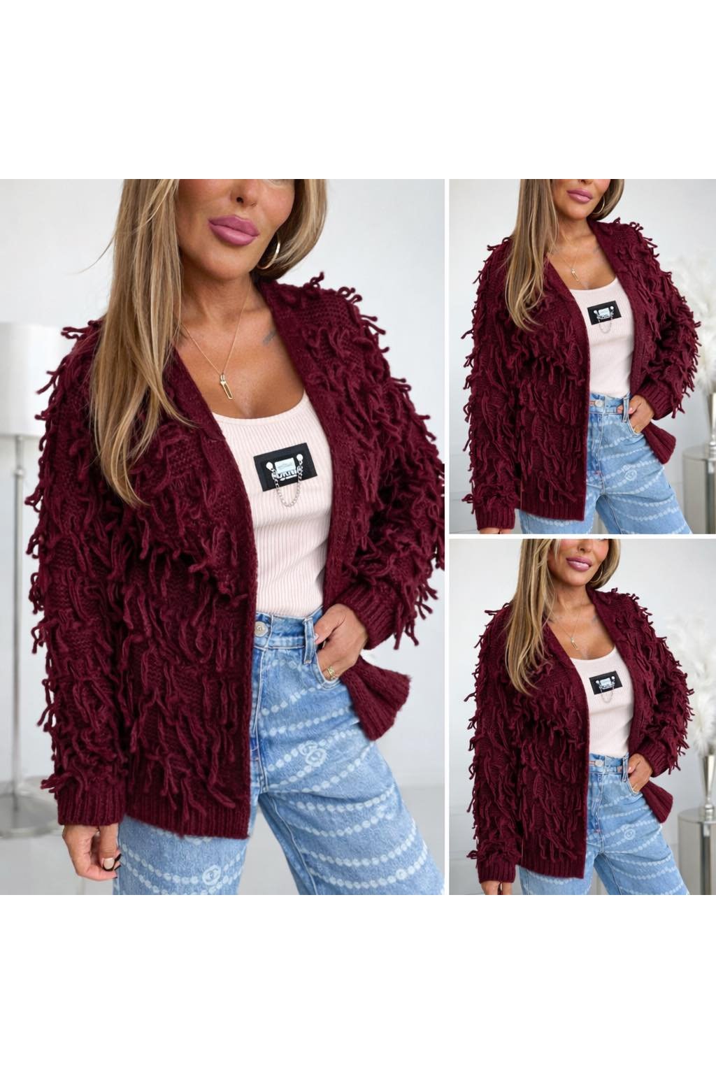 Pletený cardigan střapatý, bordó, UNI vel. 38-46
