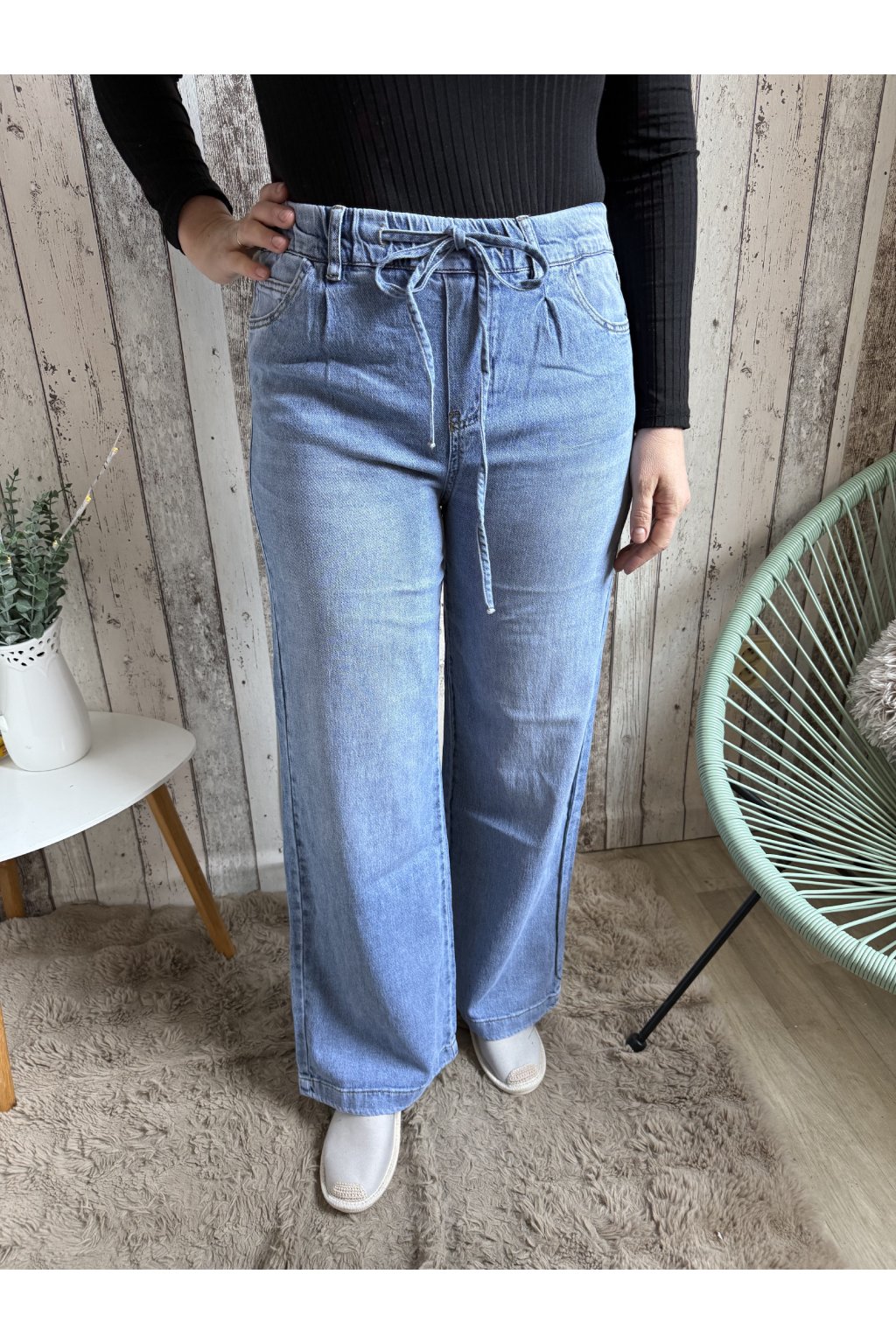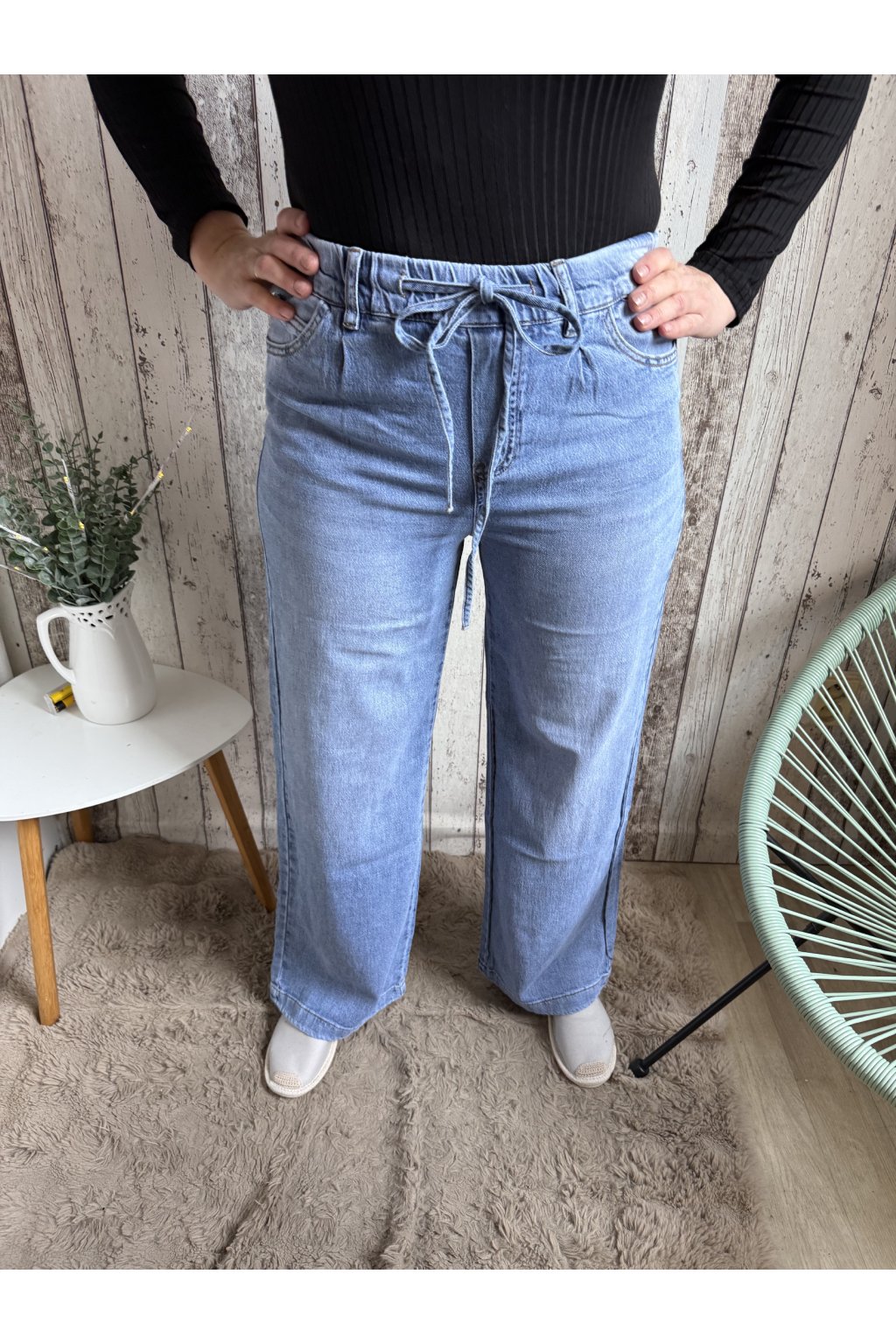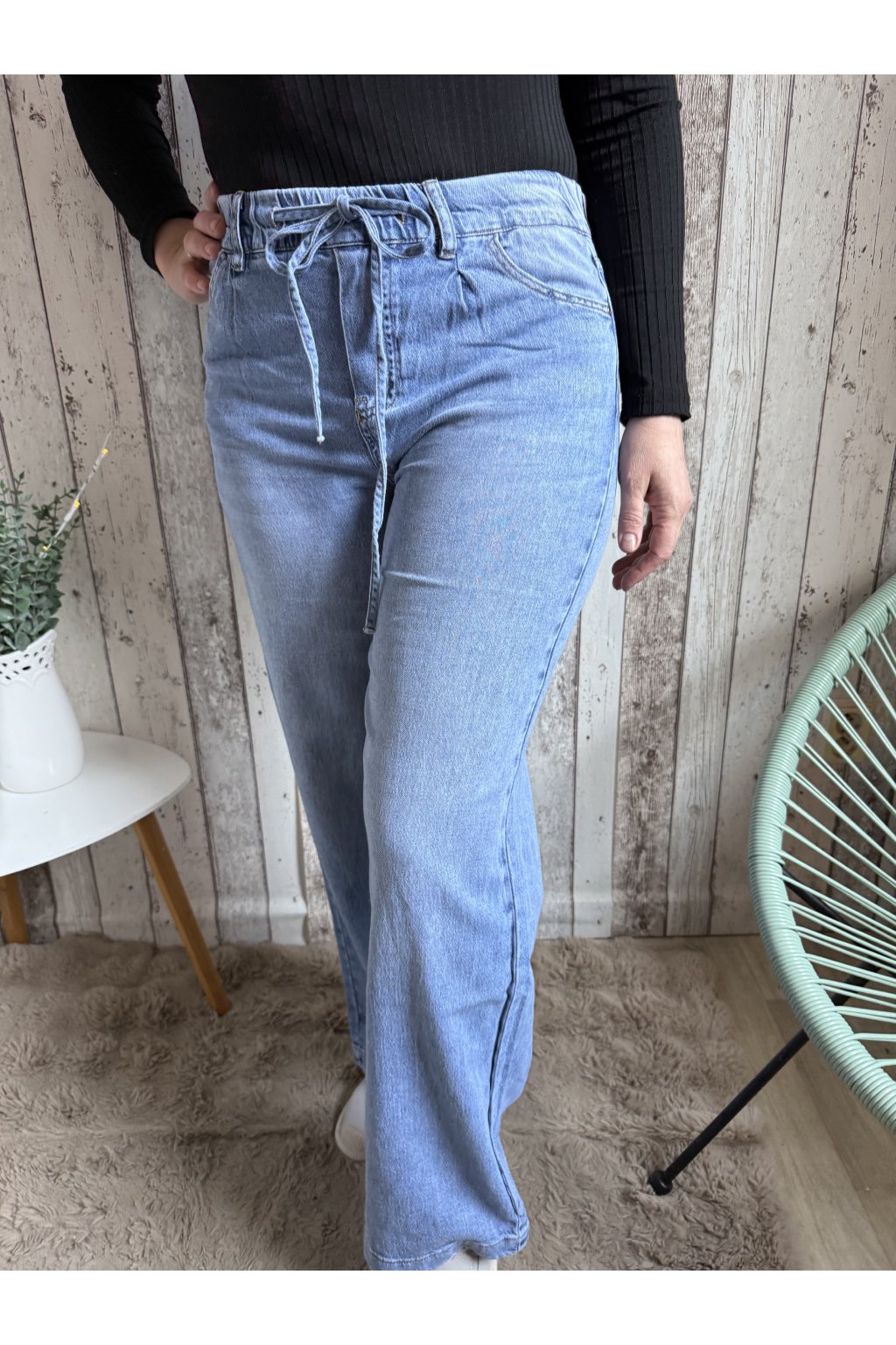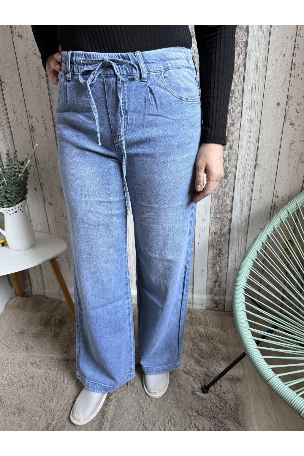 Široké jeans na gumu, světle modré
