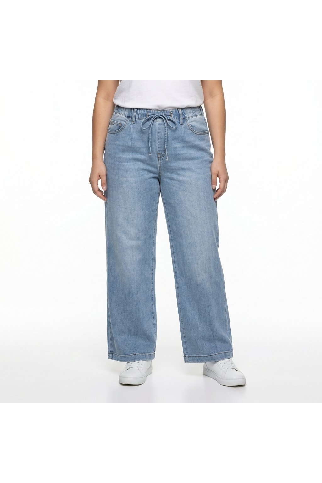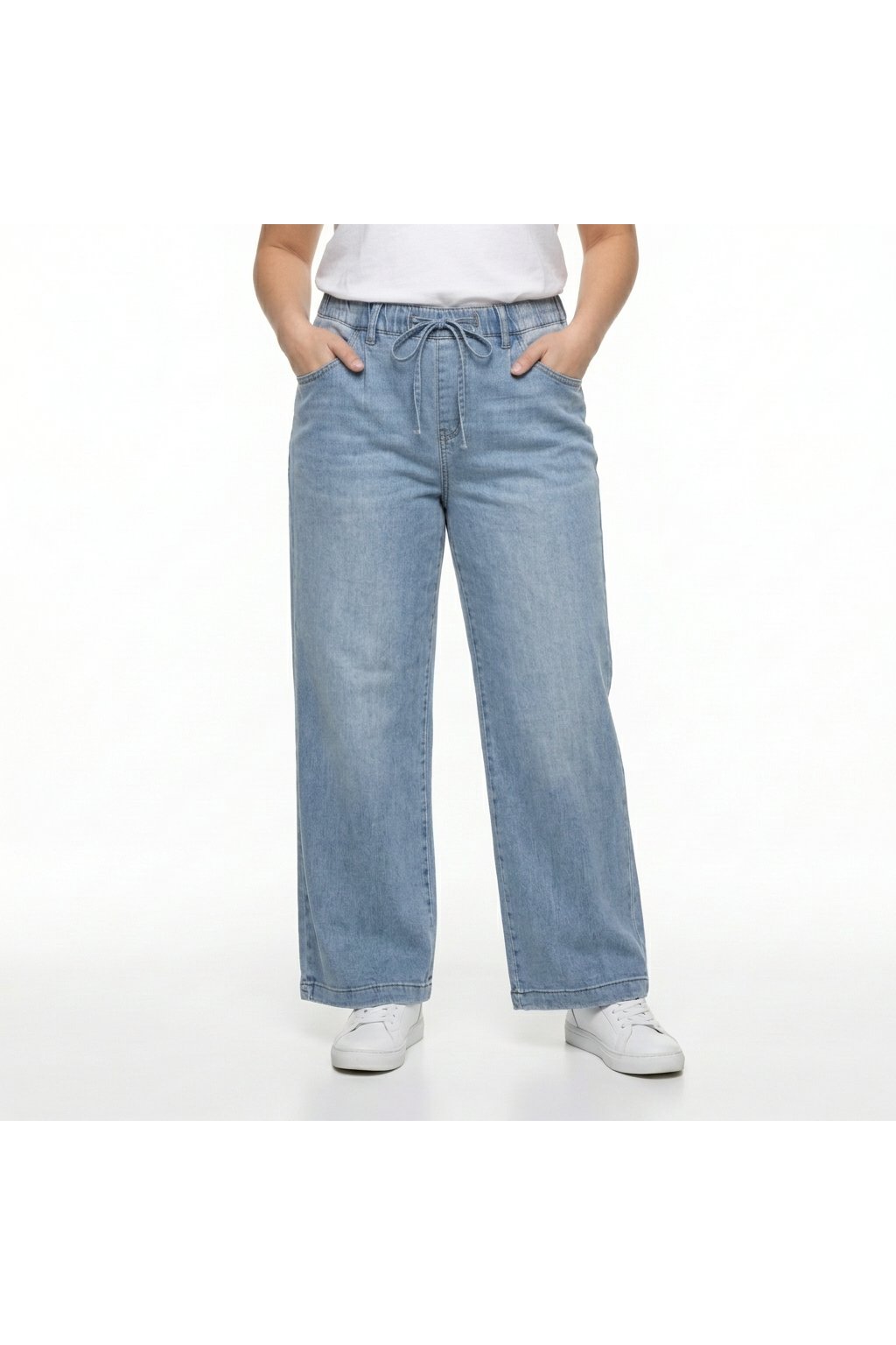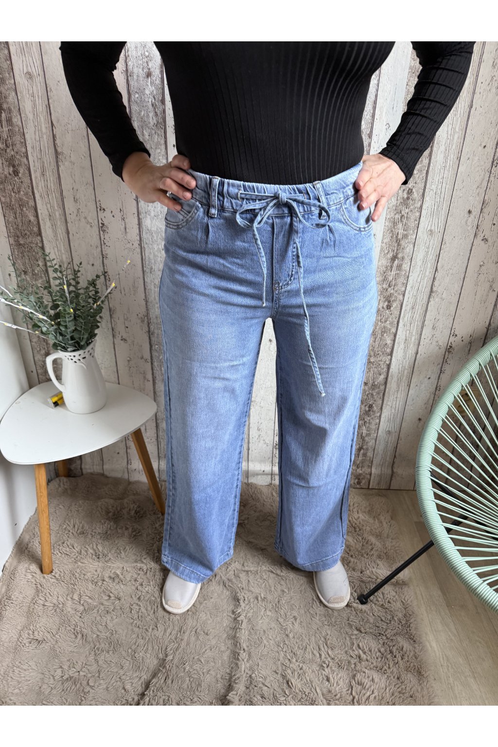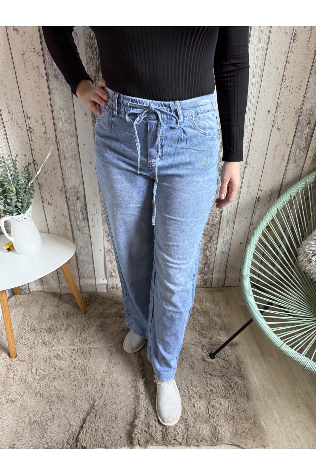 Široké jeans na gumu, světle modré