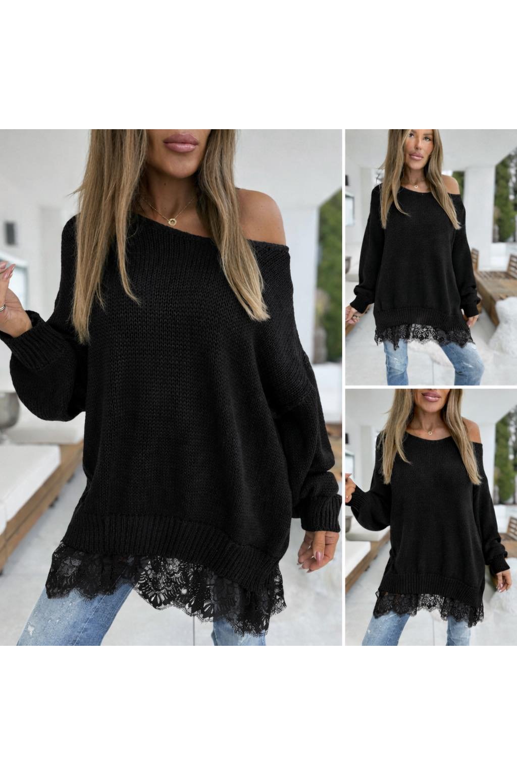 Svetr s krajkou Ella, UNI 44-50, černý