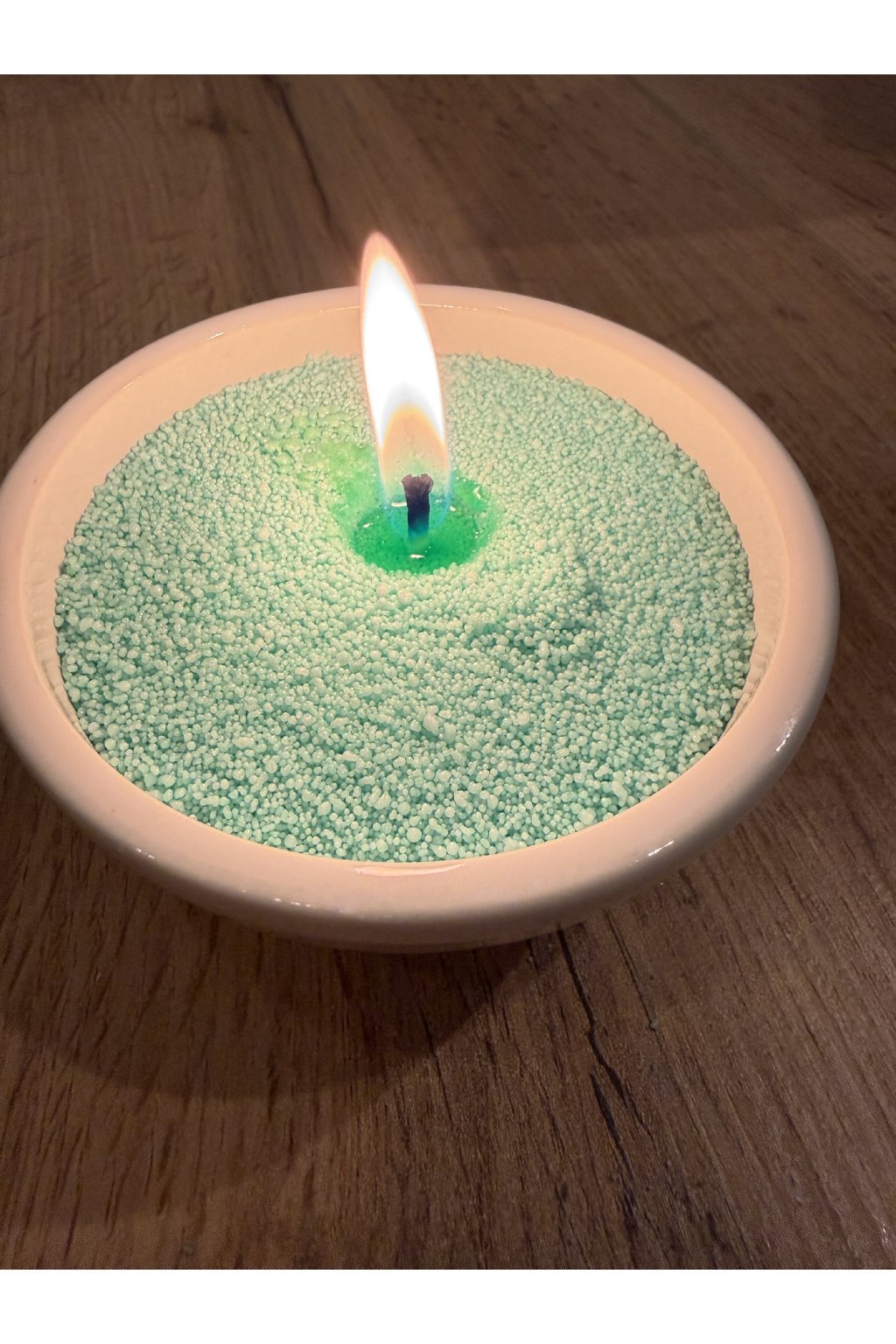 Tmavě zelený sypaný vosk Cocoya – elegance přírody ve světle svíček