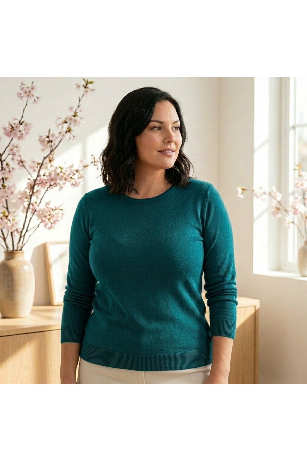Materiál je velmi příjemný na dotek, nekouše a skvěle se nosí po celý den. Střih je jednoduchý, ale lichotivý – zakryje, co má, a zároveň nevytváří zbytečný objem. Svetřík se snadno kombinuje s džíny, legínami i elegantnějšími kalhotami, takže ho využijete jak do práce, tak na volný čas.